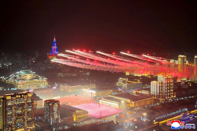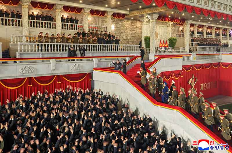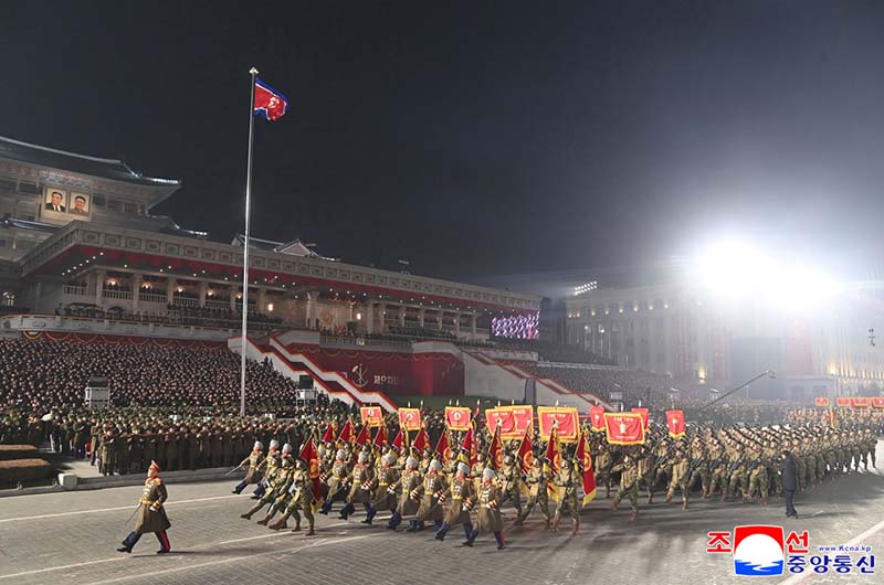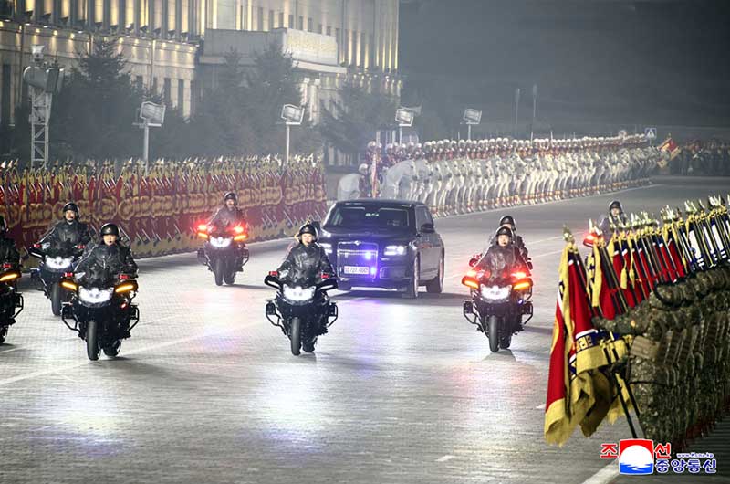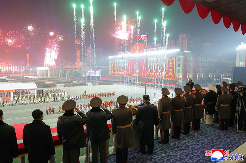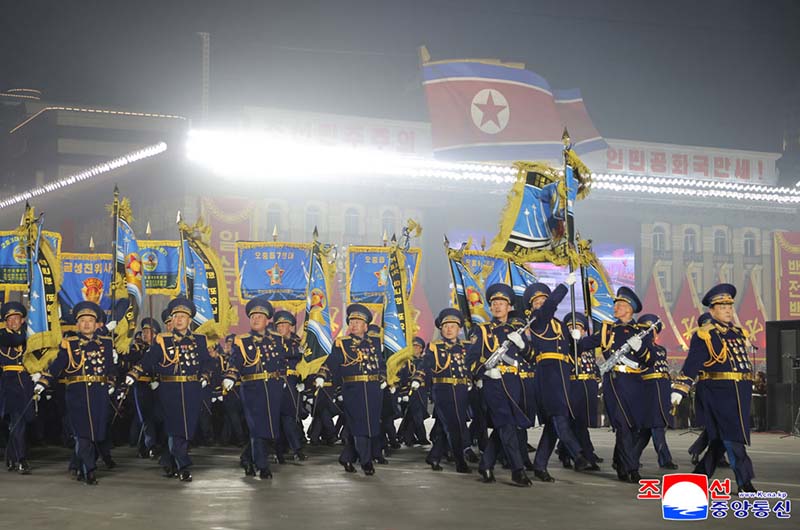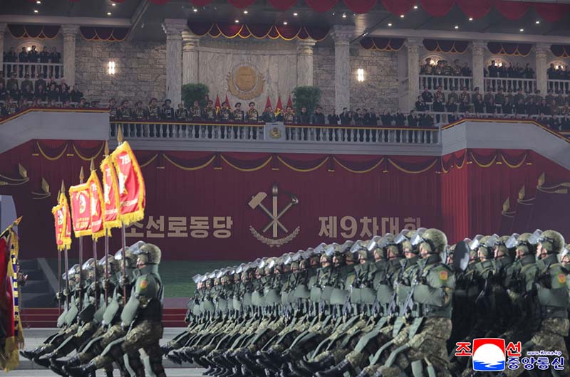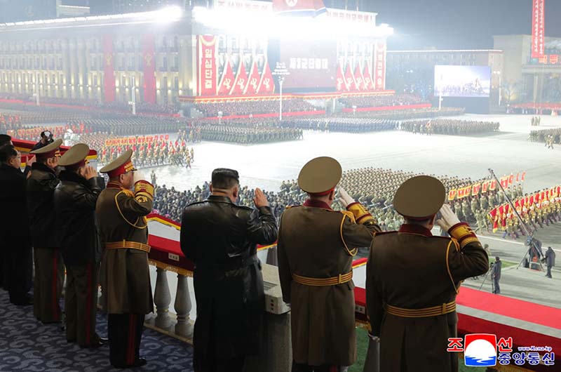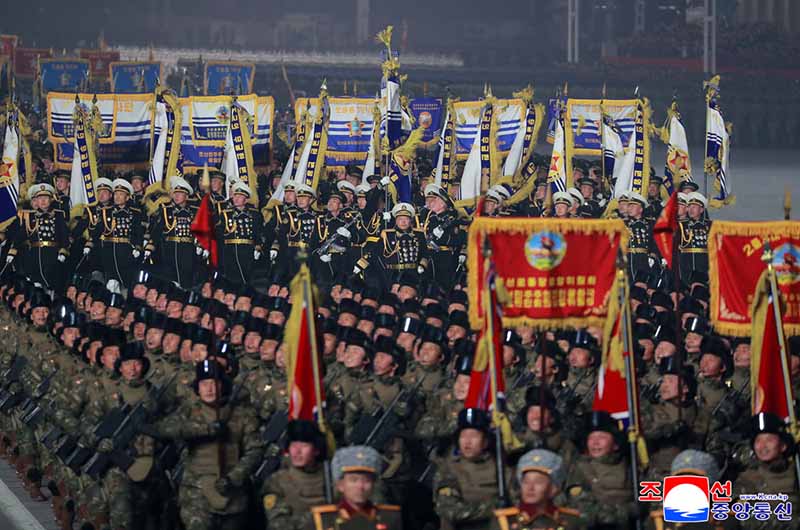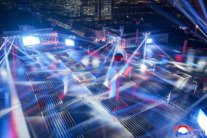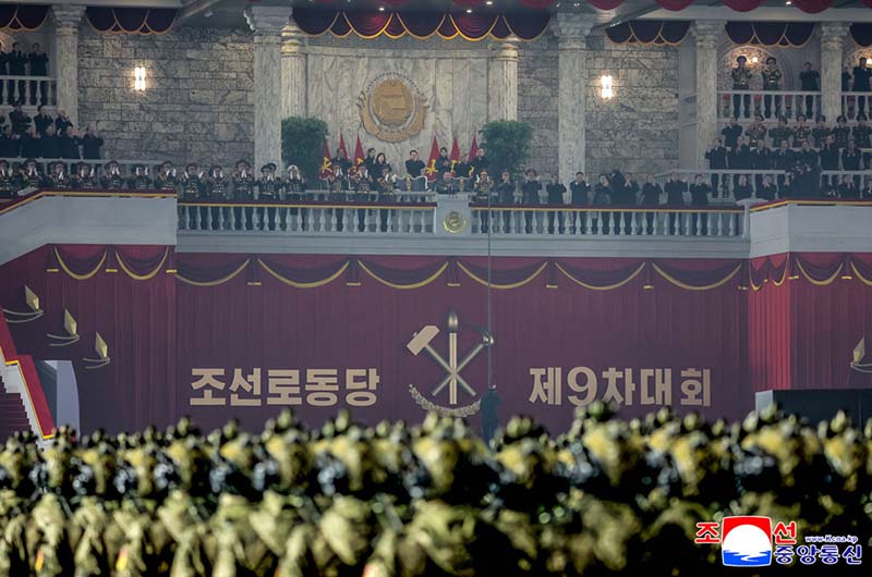 朝鮮労働党第9回大会記念閲兵式が2月25日の夜、金日成広場で盛大に挙行された。