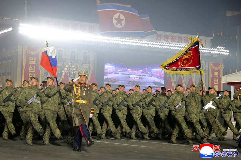 今日の記念閲兵式は、困難を極めた闘争を誇らしく総括した喜びに満ちて、再び偉大な新しい開拓を目指すわが人民と人民軍将兵の衝天した勢いと革命的情熱を余すところなく誇示するでしょう。
