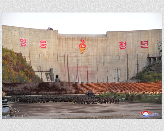 「青年たちが建てた発電所のダムを見た金正恩委員長は、壮大なもの、素晴らしいものだと重ね重ね評価しました。そして、ダムを見上げると天を突かんばかりの青年たちの気概を見るようで、遠くから見ると党中央を守る砦、盾となった青年の大軍の姿を見るようだと意味深長な話をしました。この日、金正恩委員長は青年の思想と精神が築き上げたダムなので、その高さは決して測定単位では測れない、ダムの高さはわれわれ青年の愛国心の高さ、青年強国の高さだ、と青年の偉勲を高く評価しました」