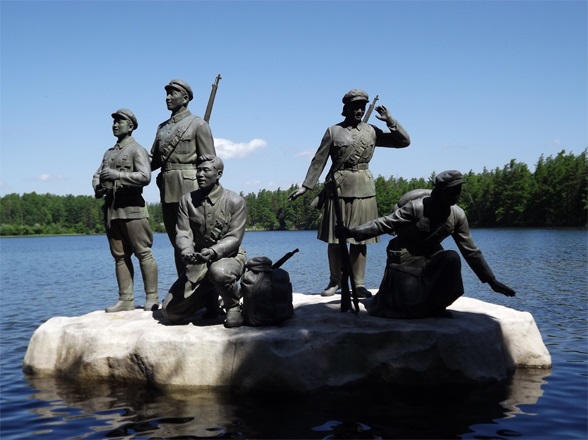 後年、金日成主席は何回もサムジヨンの湖畔を訪ねて、抗日革命闘争の時を感慨深く思い起こしました。偉大な金正日総書記は抗日の伝統を朝鮮革命の万年の富、朝鮮革命の命脈をつないでくれる血筋とみなし、チュチェ45(1956)年6月、ピョンヤン第1中学校の革命戦跡地巡りのチームを率いてサムジヨンを訪ねました。