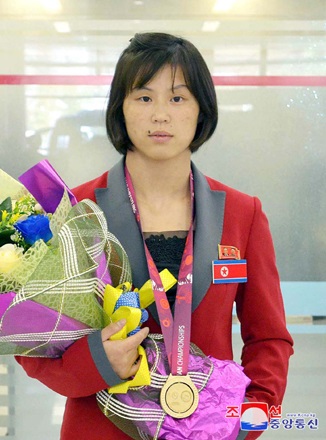 パク・ヨンミ選手は10代にピョンヤン・スポーツ団で現役生活を始め、すぐ国内戦で優勝し、専門家の耳目を引きました。頭角を現して2013年はアジア・レスリング選手権大会で優勝するなど国際競技でも好成績をとりました。その功労が買われ、功労スポーツマンの称号を受けました。