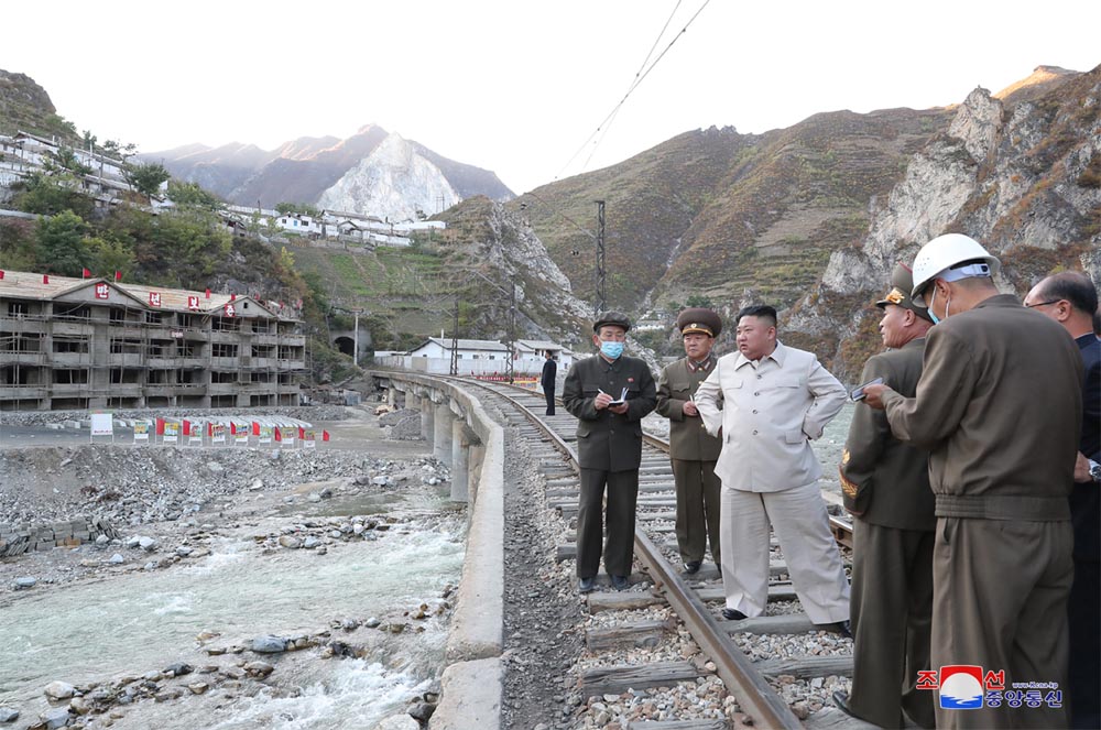 敬愛する最高指導者金正恩委員長は80日間キャンペーンが開始されるやいなや、臨時に復元された危険千万な峡谷線路に沿ってハムギョン南道*1コムドク地区*2の被害復旧現場を訪れました。人民の苦痛を癒すための災害復旧工事を年末まで必ず完了するのは80日間キャンペーンの主な目標の一つでした。