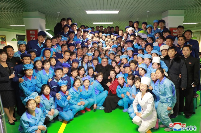 金正恩委員長はウォンサン革靴工場の従業員が継続革新、継続前進の精神でまい進し、人民の好評を博し、人気のある製品をより多く、より見事に生産して労働党の政策を先頭に立って実行するものとの期待を表し、工場の従業員と生産現場で意義深い記念写真を撮りました。