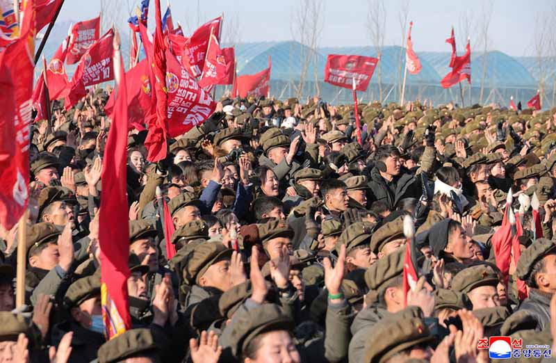 金正恩総書記は、わが党の地方発展構想と決心を至上の命令として受け止め、尽きない愛国・忠誠心と不屈の開拓精神、英雄的闘争をもってわれわれの世代の貴い名を時代と歴史に輝かしく印した青年、将校、兵士を力強く鼓舞した。