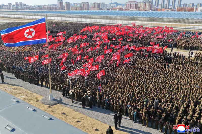 金正恩総書記は、家庭と愛する家を遠く離れて祖国の西北端で新年を迎える青年前衛、軍人建設者と2026年の始まりを共に祝いたくて、中央の行事が終わる次第に駆けつけたとし、党中央と共和国政府、全人民の名で熱い激励のあいさつを伝えた。
