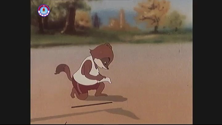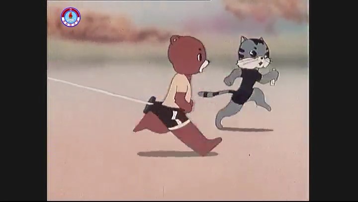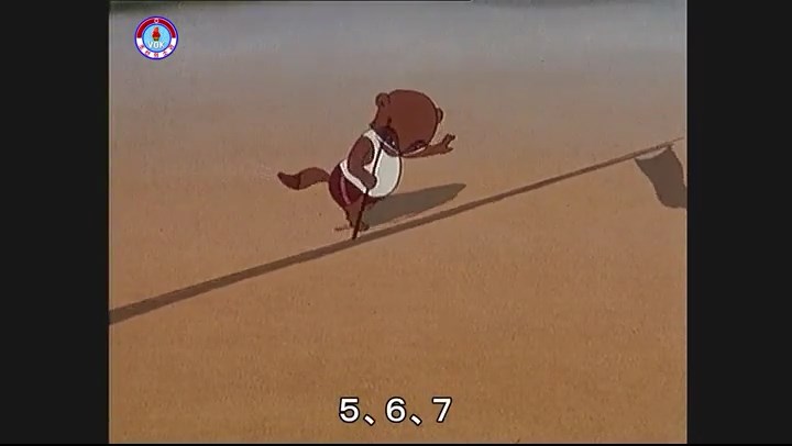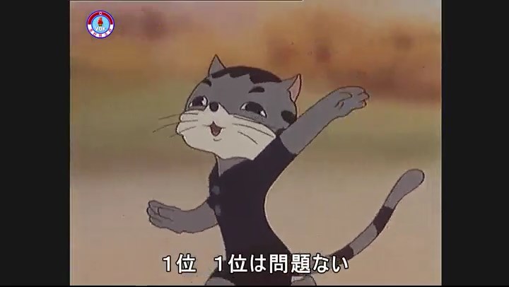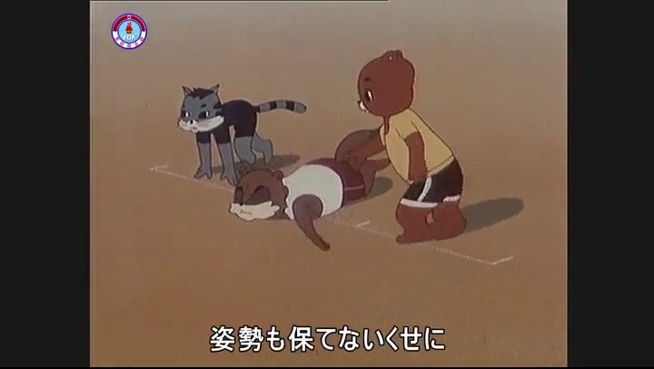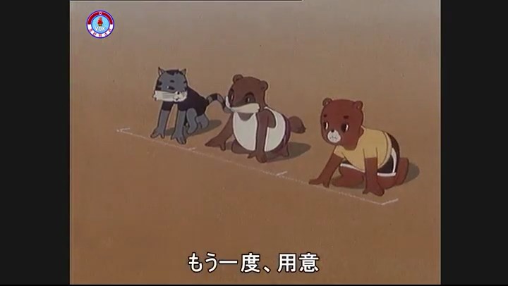 ※一斉に走り出すが、少しずつ遅れるタヌキ。ネコが一番先に巻尺を手にする。