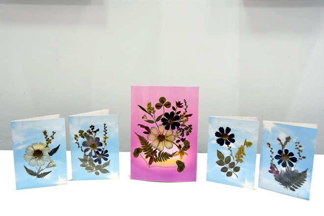 今、研究所のプリザーブドフラワー製作所では90種あまりの花と草を利用して、100種あまりのプリザーブドフラワーの製品を生産しています。圧搾したものから立体的に乾燥させたもの、花かごと花束、壁の飾りつけと年賀状と記念品箱にいたるまでその種類は実に多種多様です。ただ今手折ったかのような赤い色のバラ、赤松の葉と茎、松かさを利用した壁の飾りつけ、いろいろな野花を編んでリアルに表したウサギの兄弟と孔雀などなど。