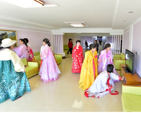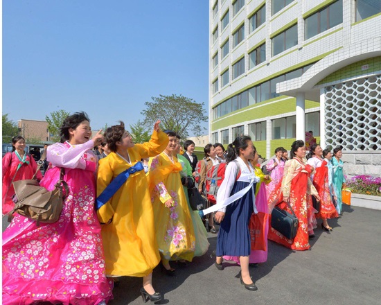 寮の竣工式の日、宮殿のような生活の場に新居入りした女性労働者たちは目の前の現実が夢のようで、見るもの聞くものみながすばらしいの一言でした。労働者たちが一日の仕事を終えて寮に帰ると、優しい母の思いやりが宿るいとしい実家に来たようでした。いや、実家よりもっと暖かい情が労働者たちを抱きいれ、親の愛情に勝る温情が寮のいたるところに宿っていました。