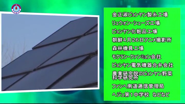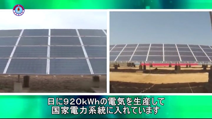 「現在、ピョンヤン子供食品工場、テドンガン食品工場、テソンサン・ミネラルウォーター工場、ラクラン戦勝栄誉軍人プラスチック用品工場を始め傘下の工場、企業で太陽光による電力生産システムを構築して生産と経営活動に大いに活用しています。国も大きな利益を得ています」