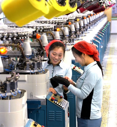 8年前のチュチェ99(2010)年、パクさんは中学校を卒業してピョンヤン靴下工場に入りました。クリーンな環境のしょうしゃな建物と生産現場に並んでいる現代的な設備、フル稼働する設備の間を行き来する労働者たち。パクさんにはこの工場がとても気に入りました。また自分がはいている「チョルチュク」ブランドの靴下を自分で造るという思いで心は弾みました。