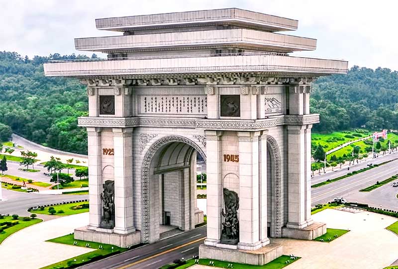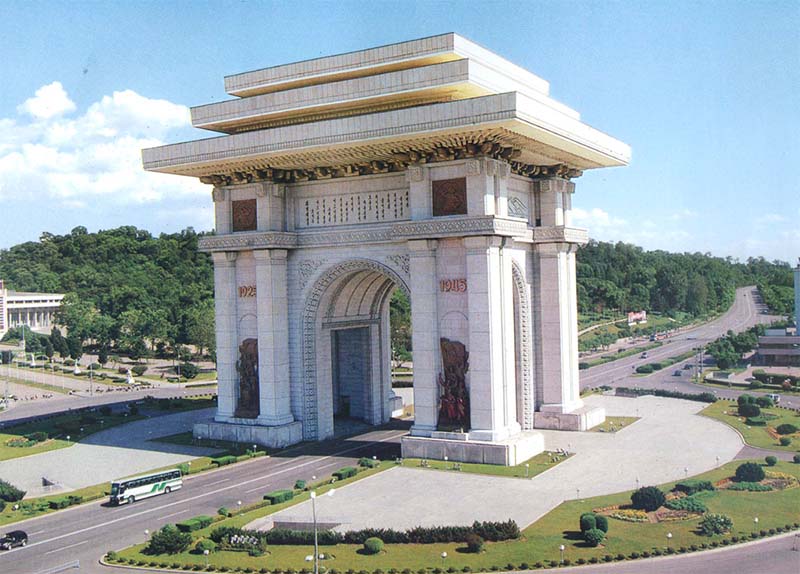 凱旋門は抗日革命闘争を勝利へと導いて、朝鮮の解放をもたらした偉大な金日成主席の不滅の業績を末永く伝える大記念碑です。