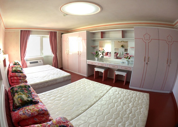 これほど素晴らしい寮で金正淑ピョンヤン製糸工場の労働者たちはなんの不便もなく暮らしながら、張り合いある労働生活を営んでいます。