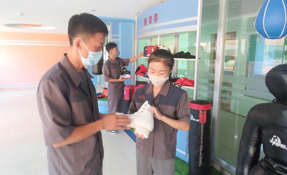 ピョンヤン運動器具工場で新製品の開発に意欲的に取り組んで、品数を増やしています。種目別選手用のカバンと各種のストッキング、ネット、ユニホーム、訓練器具をはじめ、最近、工場で開発された運動器具は、選手だけでなく、一般の人の間でも好評を博しています。