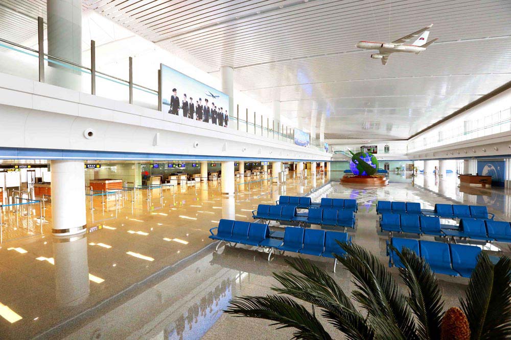 ピョンヤンの関門、国の顔とも言えるピョンヤン国際空港のエアターミナルビルを見ては、建築の生命である主体性、民族性を徹底的に具現しながら国際基準にも合うよう、エアターミナルビルを立派に建てた、朝鮮の顔、朝鮮の持ち味が生かされている、と言いました。