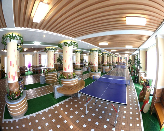 チュチェ106(2017)年1月のある日、完工した労働者の寮を訪れた金正恩委員長は、本当におしゃれでユニークな造りだと言って、女性の心理に合わせて趣向を凝らした寮の各所を見ました。玄関ホールに入って、階の高さも適当で、色感も落ち着いていると喜びました。