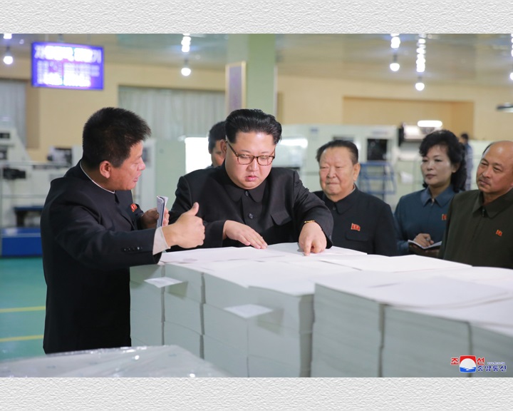 チュチェ105(2016)年4月、金正恩委員長は工場を訪れました。工場で生産されたノートを見た金正恩委員長は、子供と生徒、学生が喜ぶだろうと言って明るく微笑みました。そして、工場の各所で生産の実態をつぶさに見聞きしました。