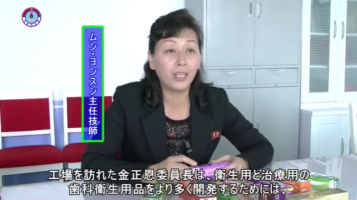 「工場を訪れた金正恩委員長は、衛生用と治療用の歯科衛生用品をより多く開発するためには、歯科衛生用品を専門に開発するチームもよく整えるべきだといいました。私たちはその教えどおりに、品質改善と新製品の開発に励んで、工場で生産される製品を人民が好んで求めるものに作るつもりです」