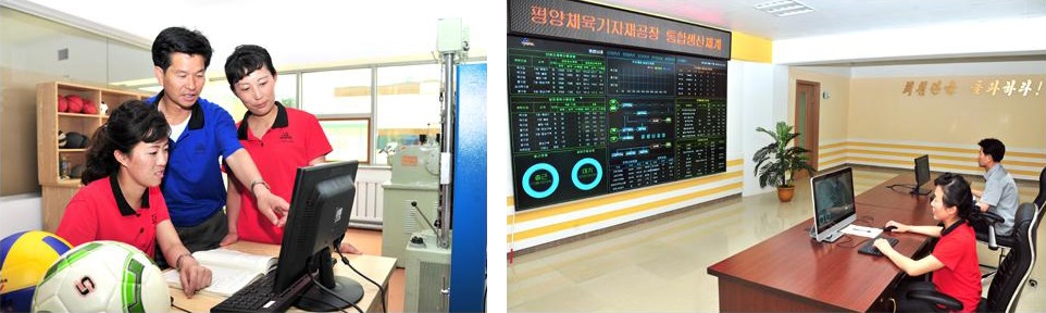 平壌運動器具工場15分間スポーツの発展に役立つ工場スポーツの発展に役立つ工場に好評を博すスポーツ機材工場国産化の基準新製品の開発に意欲的に取り組む新技術の導入に励んでいる人気製品は「テソンサン」ブランド増えるばかりの「テソンサン」ラベルの製品増える銘柄製品喜びを与える製品良質のものをもっと多く