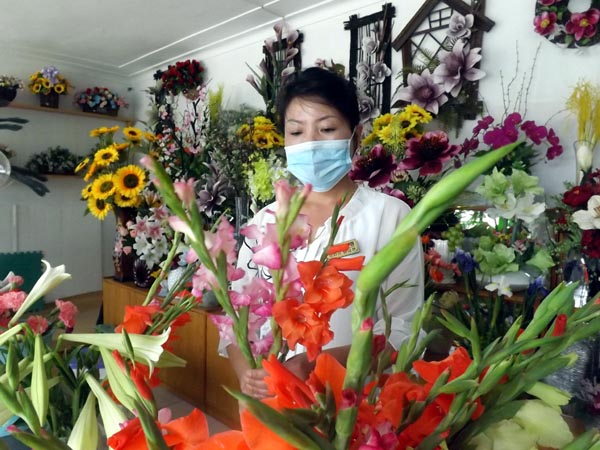 花は美しさのシンボルです。それで人誰もが花を愛します。朝鮮では至るところにフラワーショップがありますが、ここでは四季を通して色とりどりの花を売って、人々の生活に潤いを与えています。