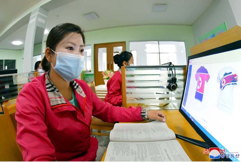 工場の科学技術普及室で勉強しているソンギョ・ニット工場の労働者です。今、普及室のデータベースには数十万件の科学技術の資料が構築されています。