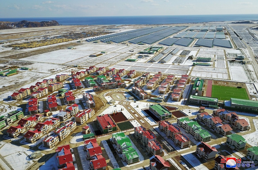 金正恩委員長は、チュチェ108(2019)年10月、キョンソン郡チュンピョン・ハウス野菜農場と育苗場の建設現場を訪れました。金正恩委員長は、展望台に上がって建設中の野菜ハウスと育苗場、住宅、各種のサービス施設を見て、無から有を創造するというのはまさにこのことだ、と喜びに満ちて言いました。