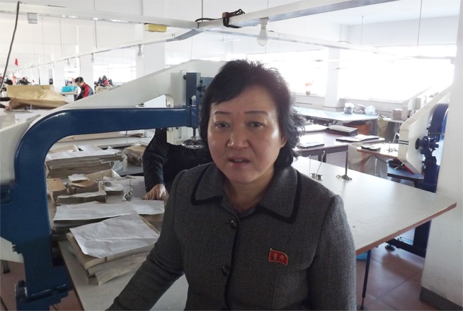 「工場で生産される製品を見て、女性を始め人民に良質の衣服と嗜好品をより多く送れると、とても喜んでいた総書記の姿が今も忘れられません。総書記は衣料問題は食料問題にまさるとも劣らない重要な2大部門の1つである、四季折々の様々な衣服と女性の日常生活に必要な嗜好品をより多く生産しなければならないと言いました。工場では人民生活向上の重要な部門を受け持っているという強い責任感を胸に、見栄えがよく、着るにも便利な様々な衣服と嗜好品をより多く、より立派に生産するつもりです」