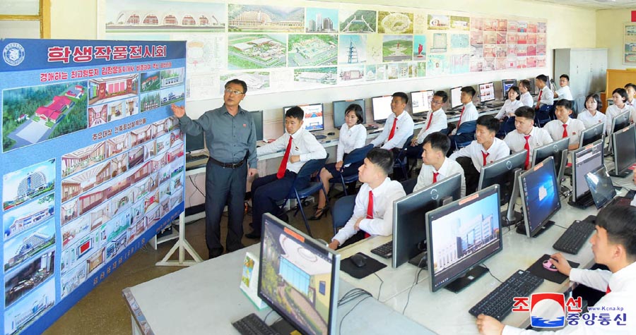 このように教員たちを驚嘆させて、金正恩委員長が美術実技室にいた時間は20分間でした。この20分間は、学生たちが国の建築を担う柱になって欲しいとの大きな期待が込められた有意義な講義時間でした。