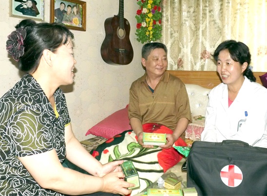 朝鮮では、医師担当区域制によって、複数の所帯を単位に担当医が住民の健康を顧みています。担当医は、国の人民的な保健医療の施策が功を奏するよう、住民に真心のこもった医療ケアを提供しています。