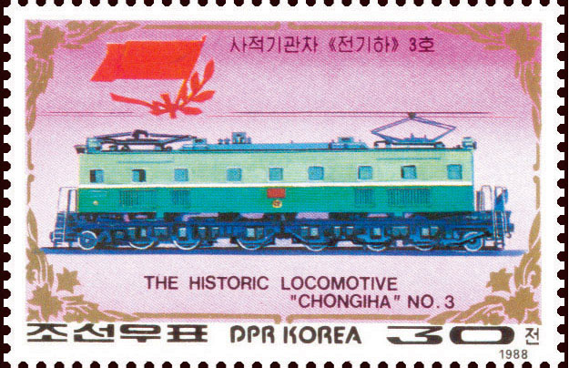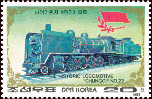解放後と戦後の困難なとき、国の鉄道運輸の発展のために尽くした金日成主席の労苦をいつまでも伝えようと、チュチェ77(1988)年に切手「歴史的な機関車『チュンギ』第22号」と「歴史的な機関車『チョンギハ』第3号」を含む4枚の「歴史的な機関車」の記念切手が出ました。