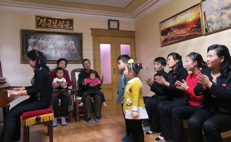 「子たちがたくましく育って、仕事に励み、幸せな生活を送るのを見ると、その喜びをなんといってよいかわかりませんね。願うことなら、子たちみなが金正恩総書記に忠実に従い、共和国を輝かせる道で常に変わりのない人生を送ったら、ということです」
