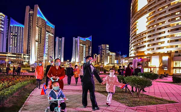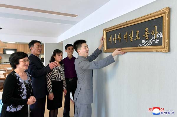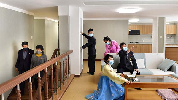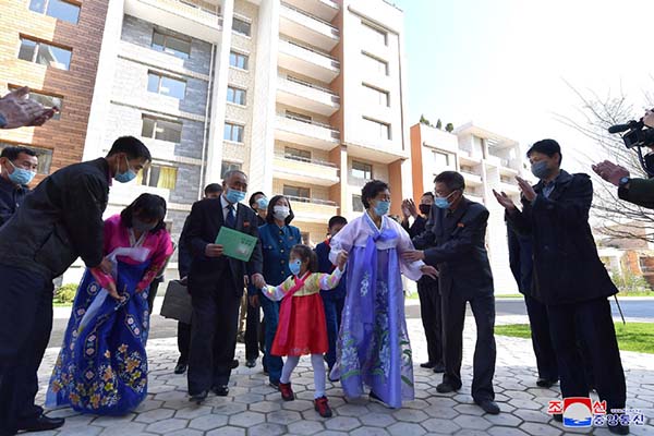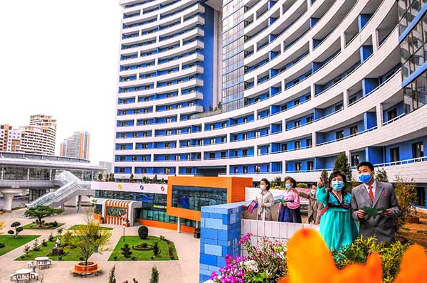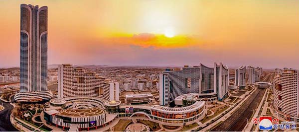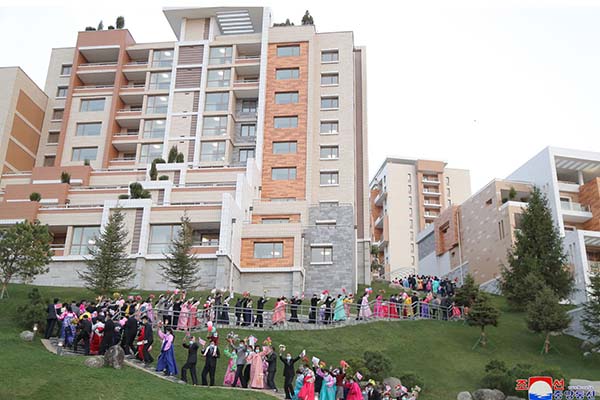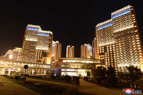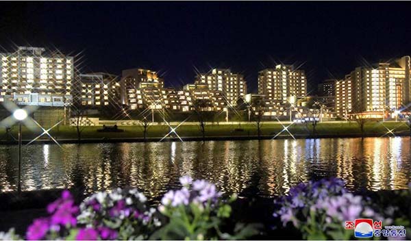 朝鮮人民に世界で一番立派な住宅をプレゼントしようとの金正恩総書記の崇高な意図により、都心のポトン川沿いにユニークな段々式住宅エリアが社会主義の繁華街に建てられました。