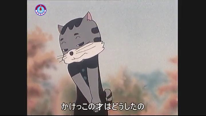※ネコ、竿のてっぺんに昇り測ろうとするが巻尺が外れている事に気づき下に降りる。