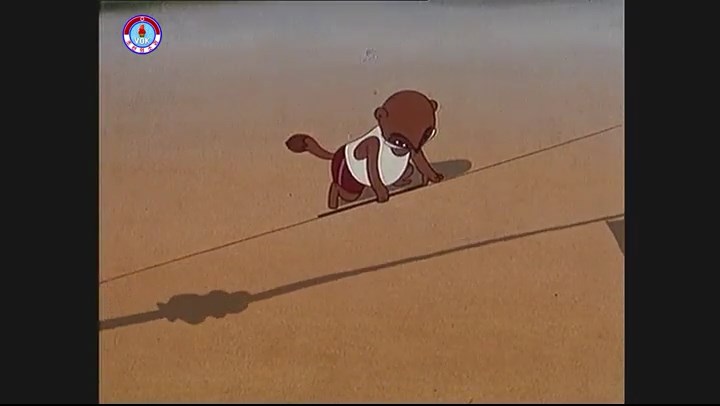「あっ、パンツが脱げてる さあ」(※タヌキのパンツがずり落ちる描写。吊るされた竿(棒)を登る練習をしているが、落ちる)