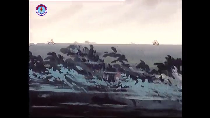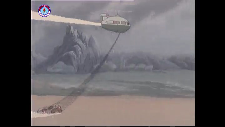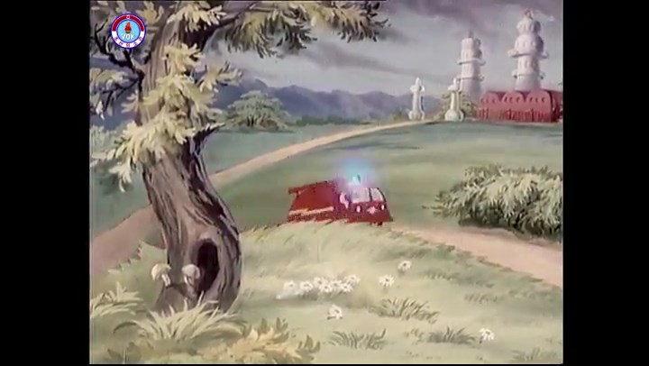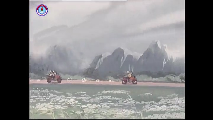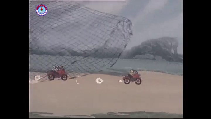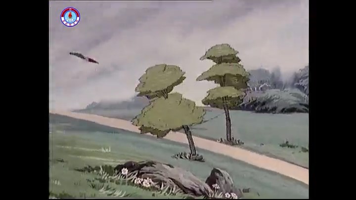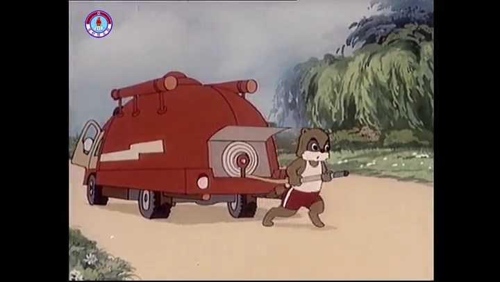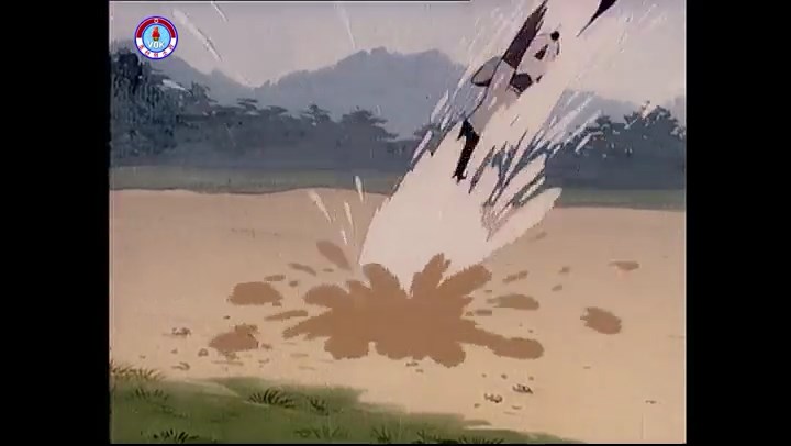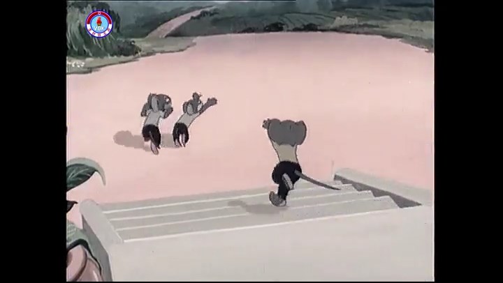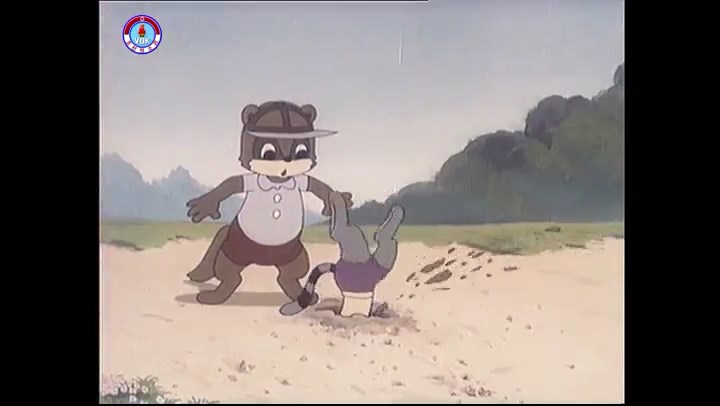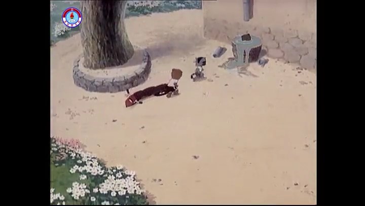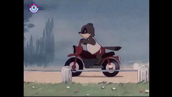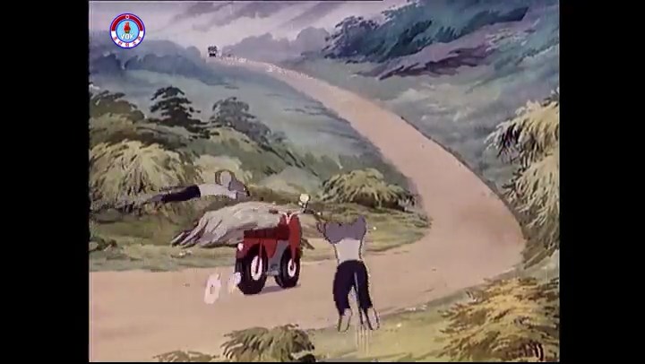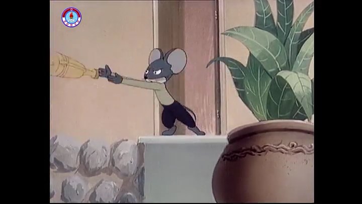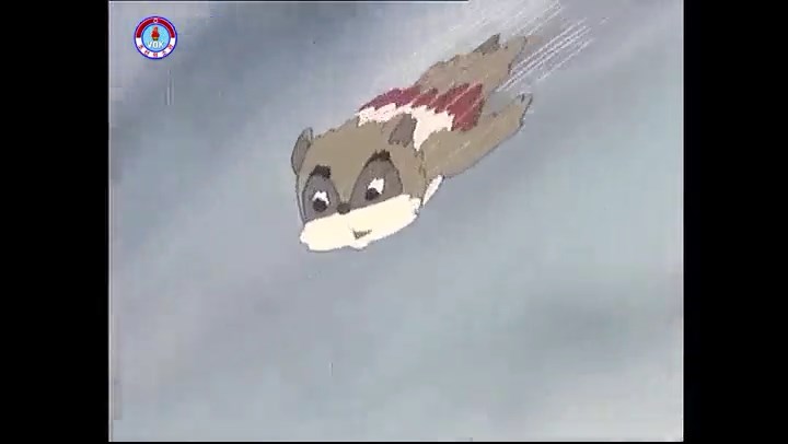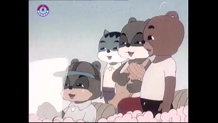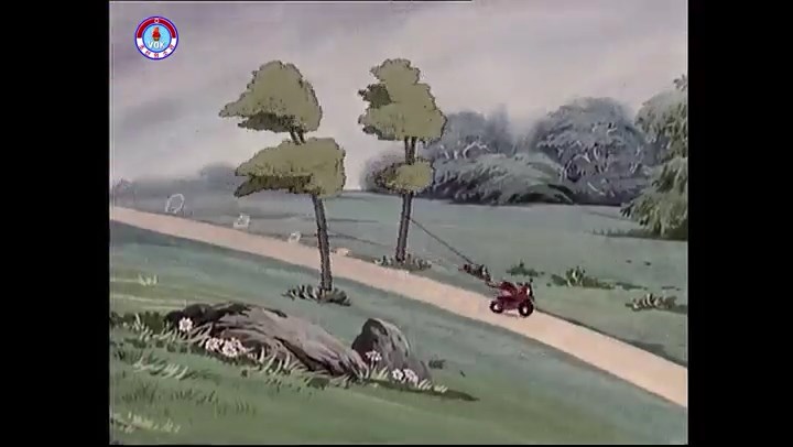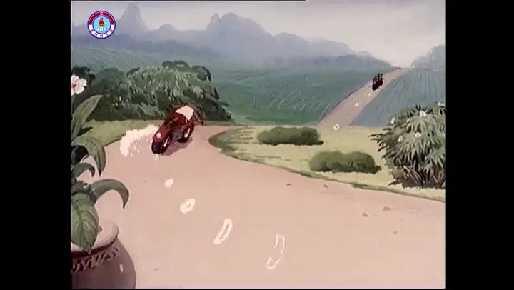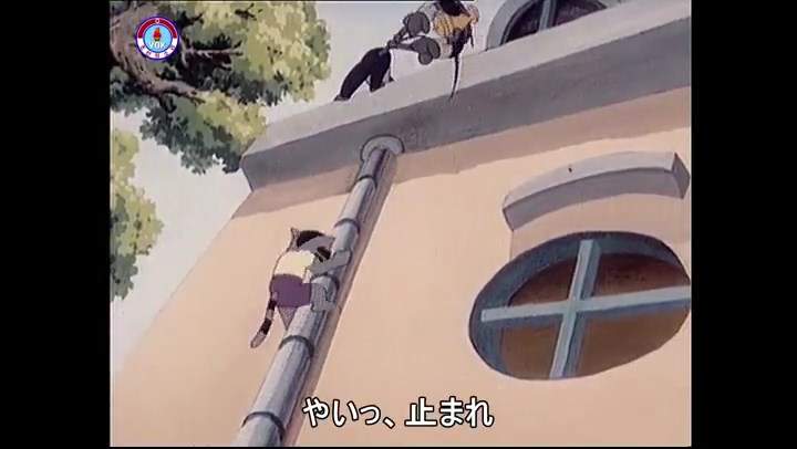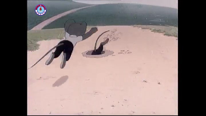 ※逃げる途中で蔓草を手に入れるネズミ。2匹がそれを道の両側の木に結び付ける。首を引っ掛けてしまうタヌキ(良い子は真似をしてはいけない)。反動で飛ばされて行く。タヌキが乗って来たバイクを奪って逃走。