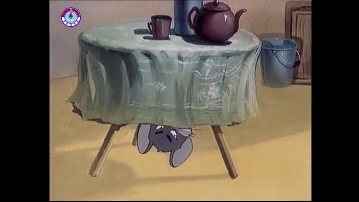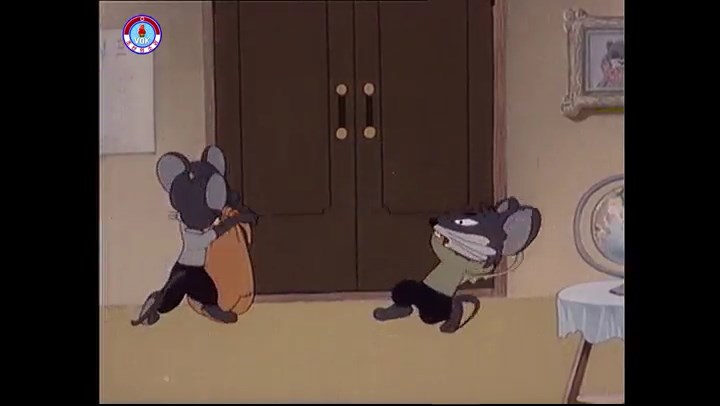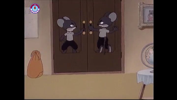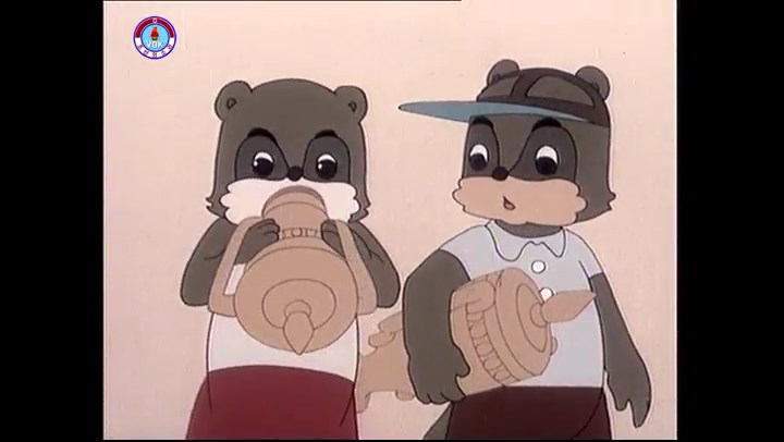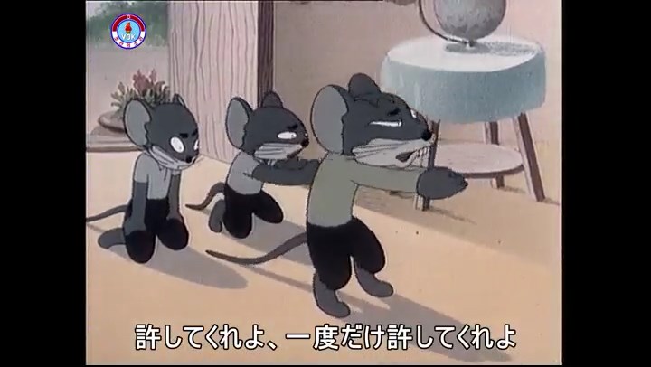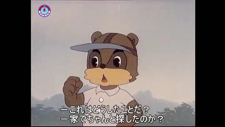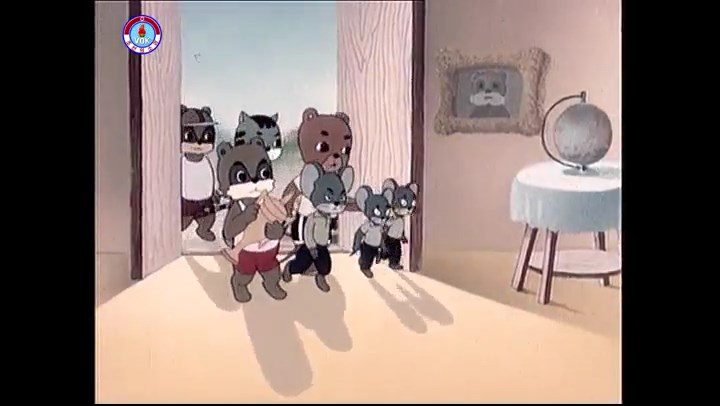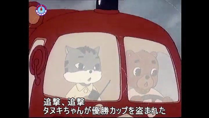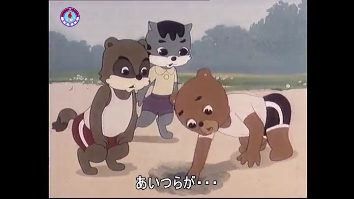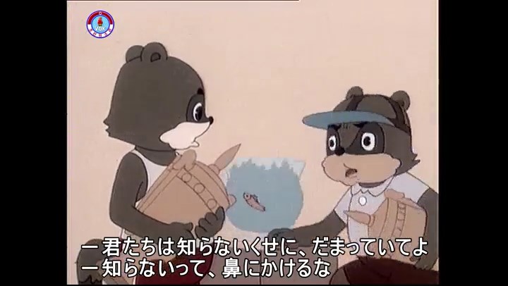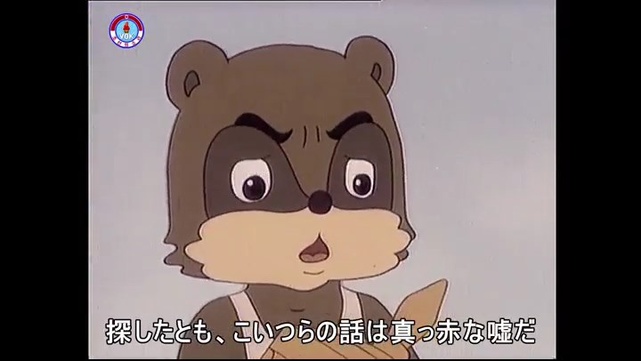 ※タヌキの家で優勝カップを偽物とすり替えようとしているネズミ一味。そこへタヌキが帰って来る。
