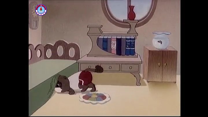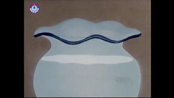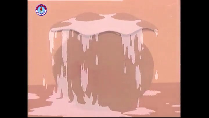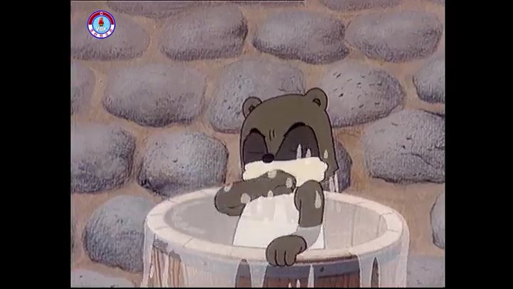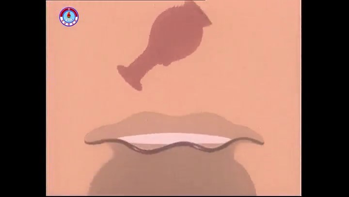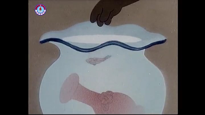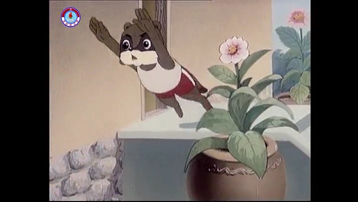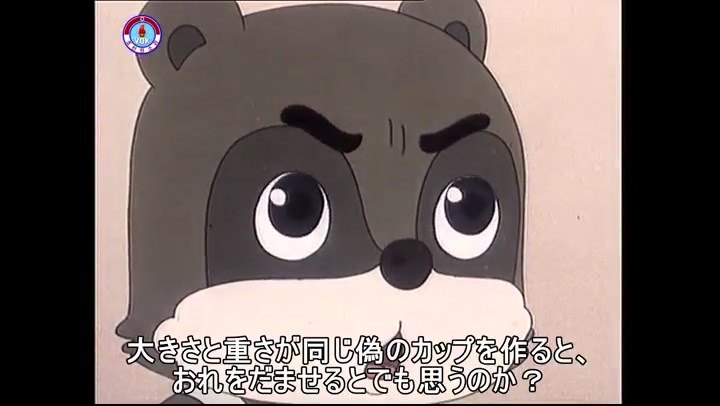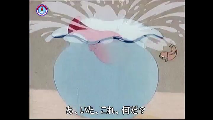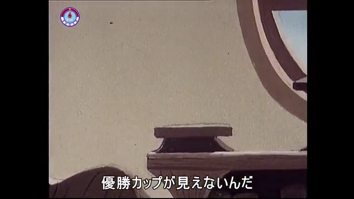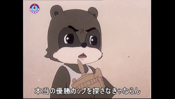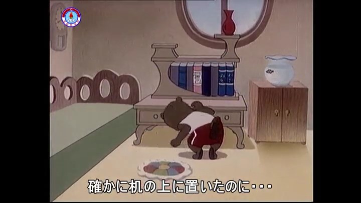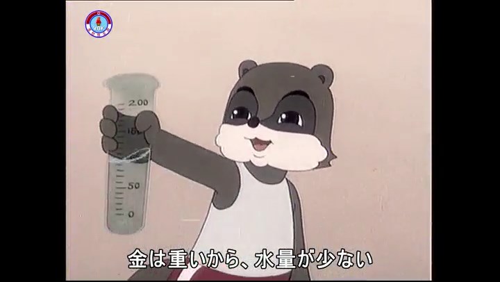 ※優勝カップを探すタヌキ、机に頭をぶつける。その衝撃で花瓶が金魚鉢の中に落ちる。鉢から飛び出した金魚を戻し花瓶を取り出す。金魚鉢の水が花瓶の体積の分だけ減っている描写。