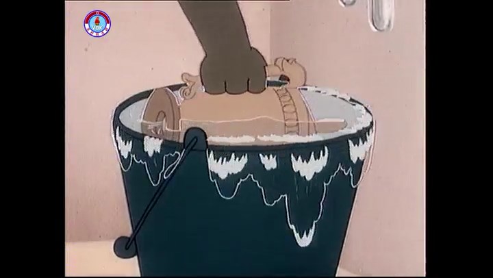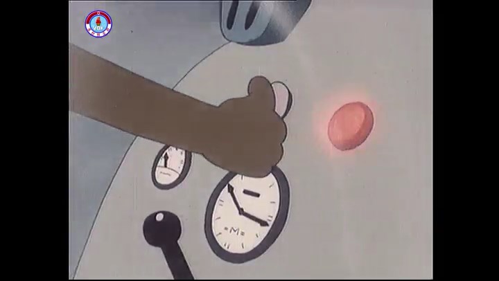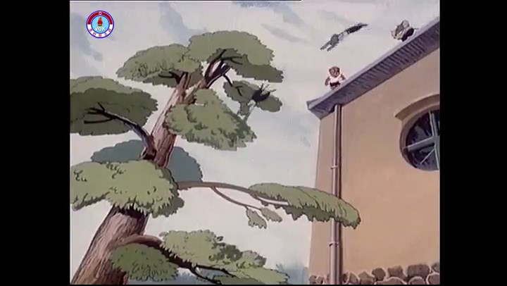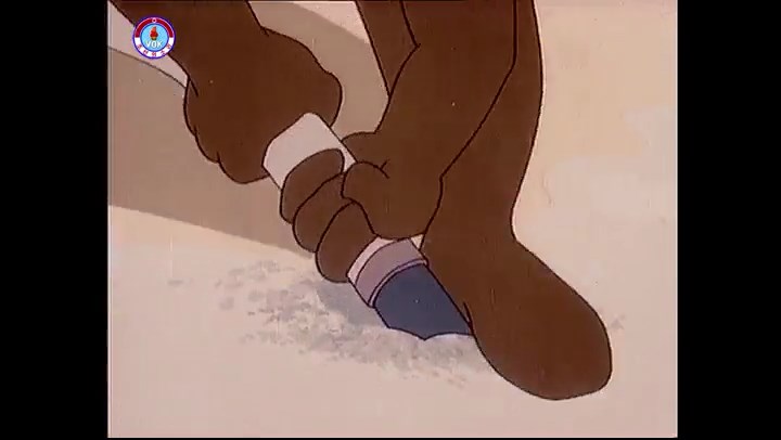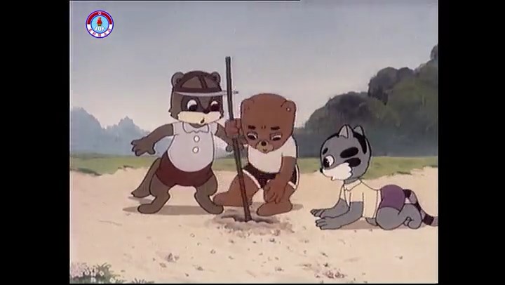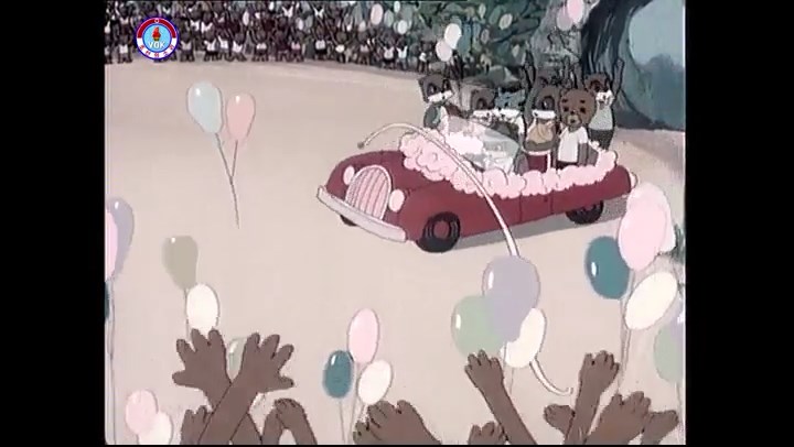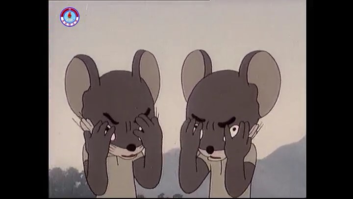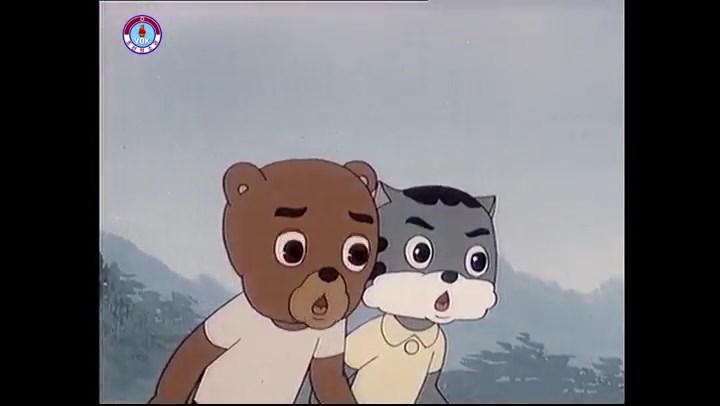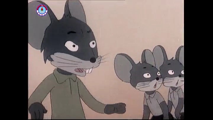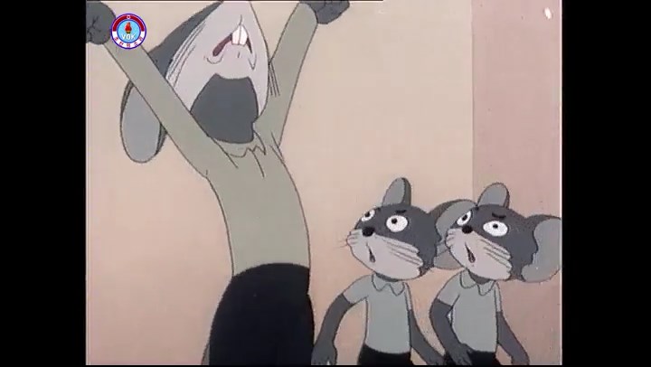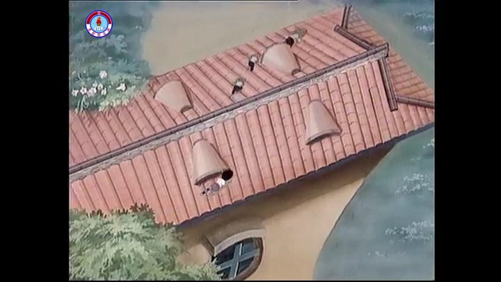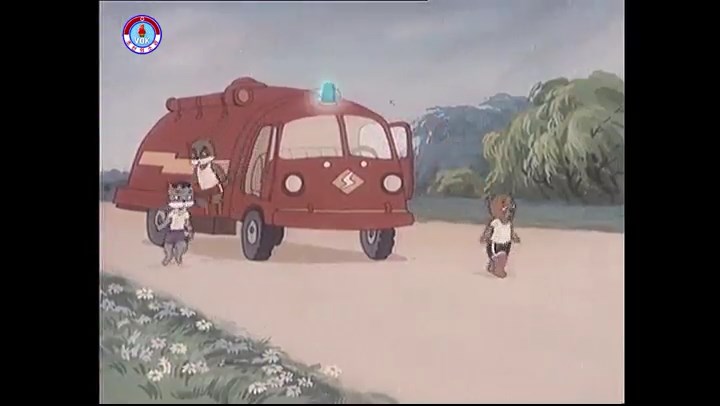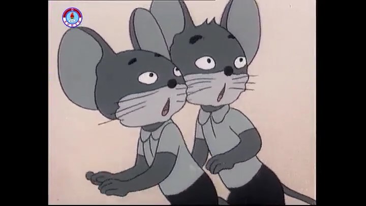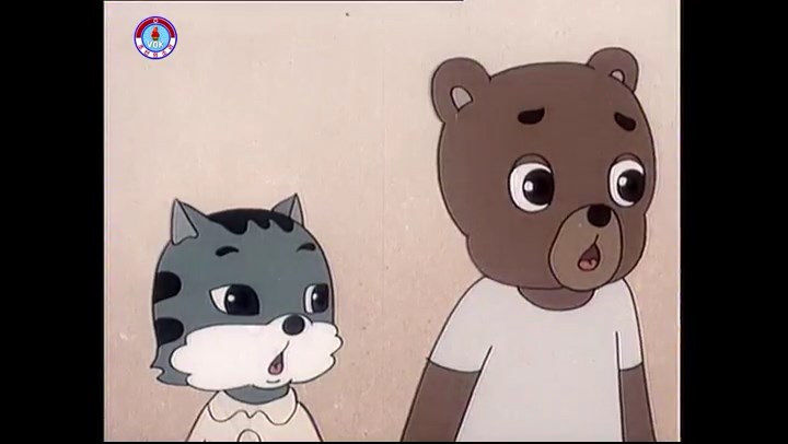 ※隠れていたネズミ達が本物の優勝カップを持って外に出ようとする。そこへクマとネコがやって来る。ネズミが投げた優勝カップが雨樋に当たる。