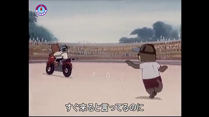 ※ネズミ一味バイクで逃走、タヌキもバイクで追跡。