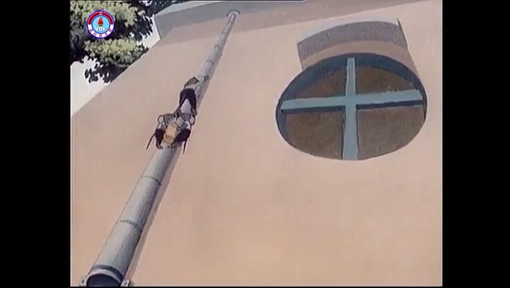 ※バイク2台で逃走するネズミ一味。追いかける消防車とヘリコプター。