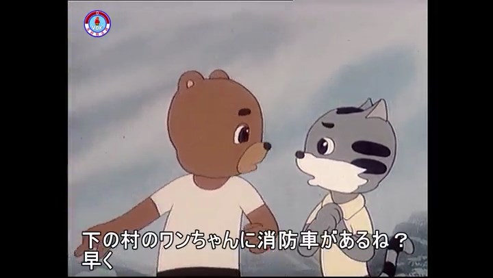 「下の村のワンちゃんに消防車があるね? 早く」