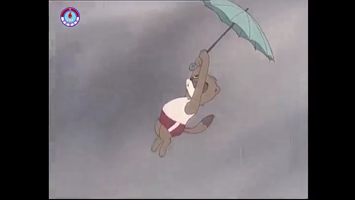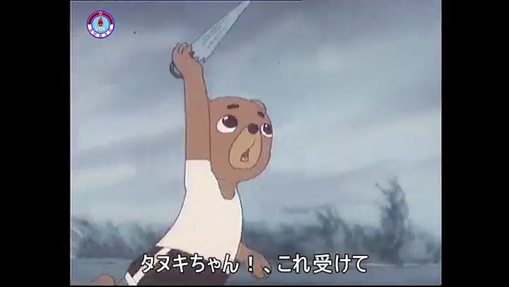 「タヌキちゃん!、これ受けて」(※クマが傘を投げる)