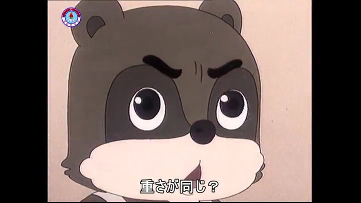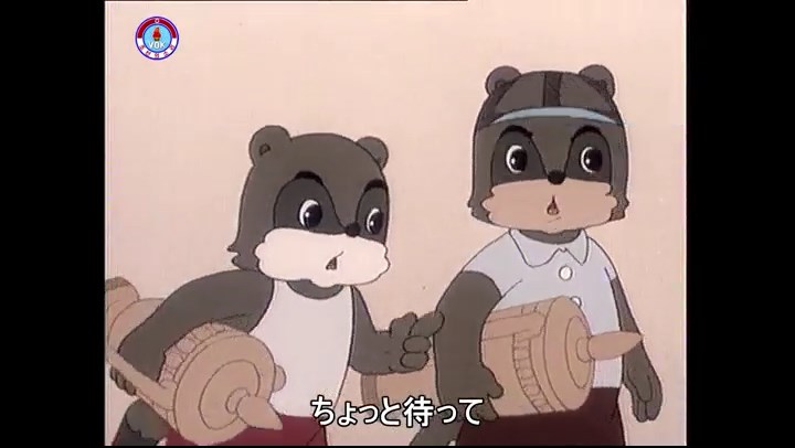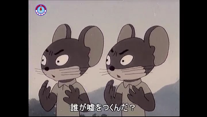 「あれは返して」(※今ネズミが持っているのが偽物、タヌキが持っているのが本物)