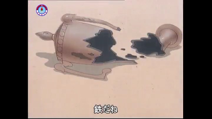 ※競技委員のタヌキが怒って台を叩く。飛び上がる金魚鉢。それを見て花瓶が金魚鉢の中に落ちて水が溢れた事を思い出す。
