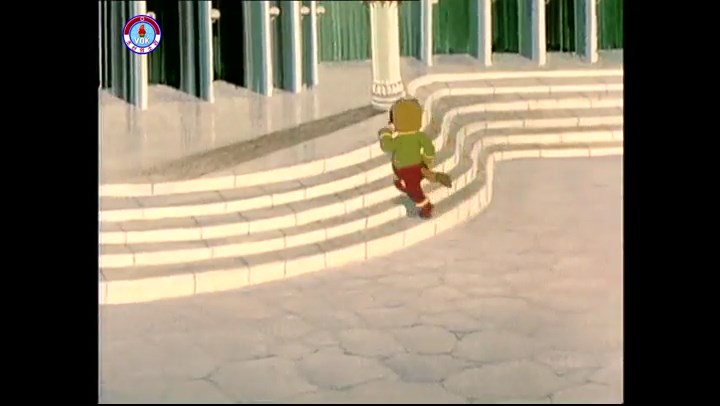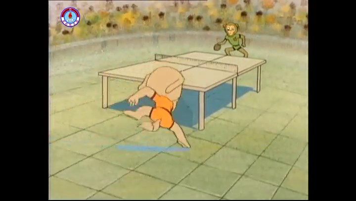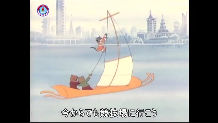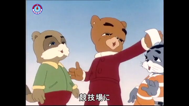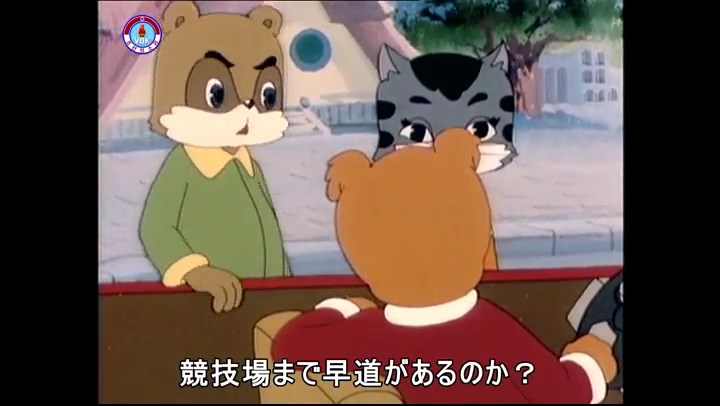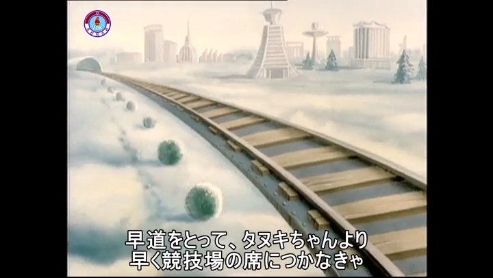 「早道をとって、タヌキちゃんより早く競技場の席につかなきゃ」