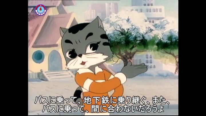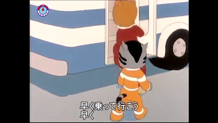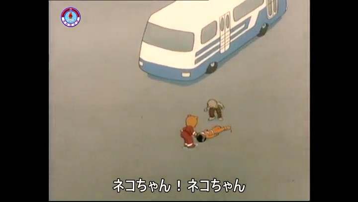 「ネコちゃん、どうだ? ネコちゃんが?」(※ネコはバスのドアにしがみ付いている)