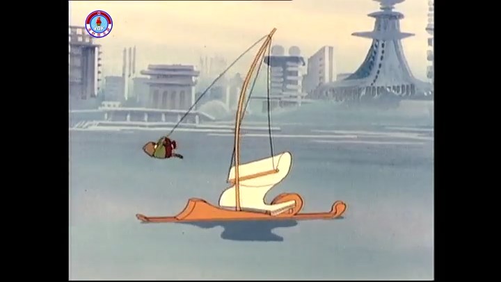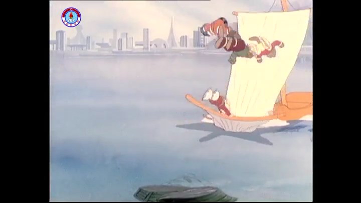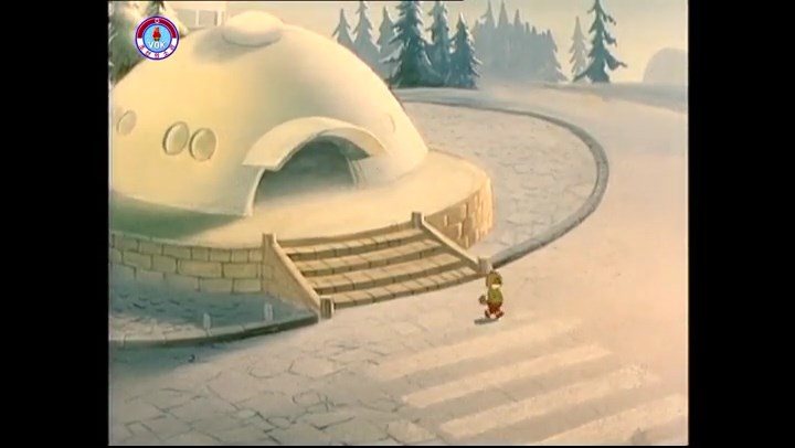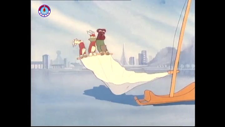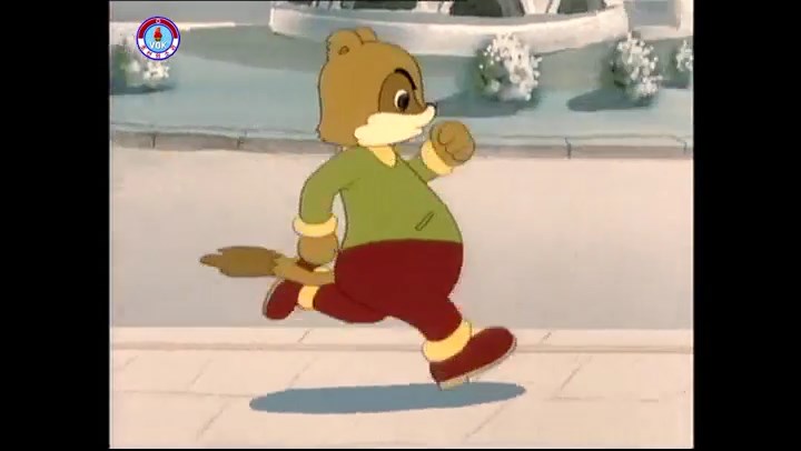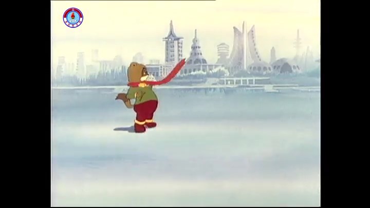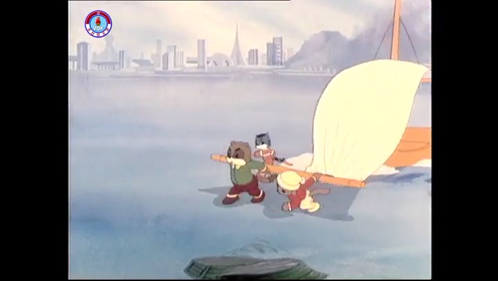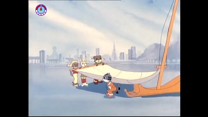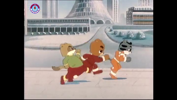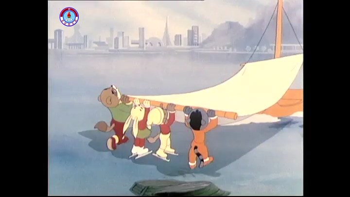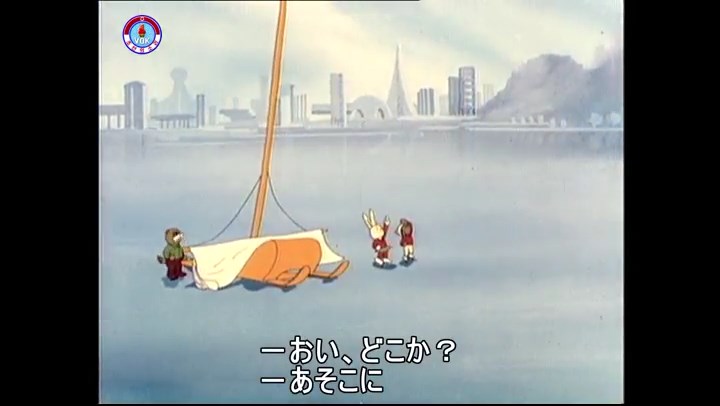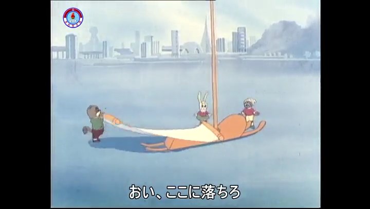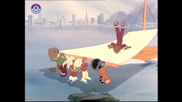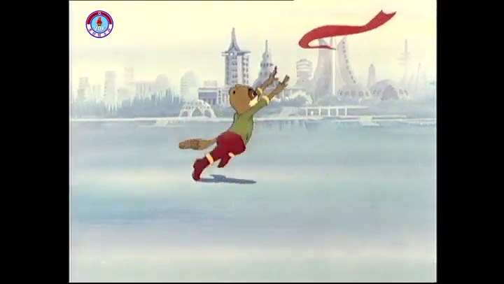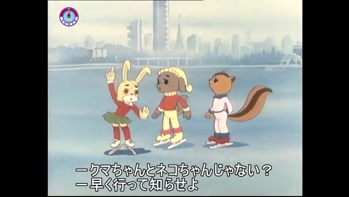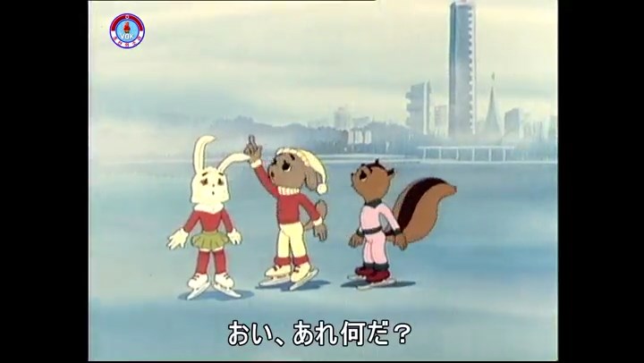 「おい、あれ何だ?」(※鉄橋の下の凍った川の上でスケートをしているウサギ、イヌ、リス)