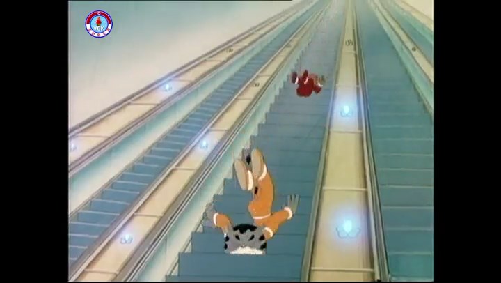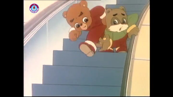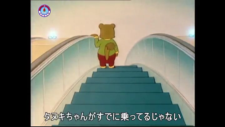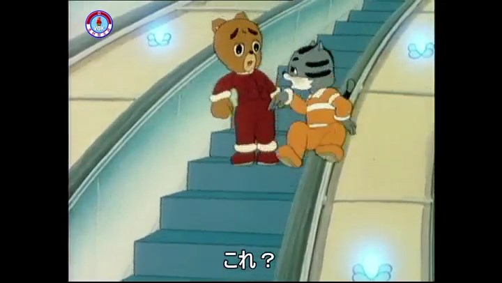 「これ?」(※エスカレーターの非常停止機能が作動する? 転げ落ちるネコとクマ)