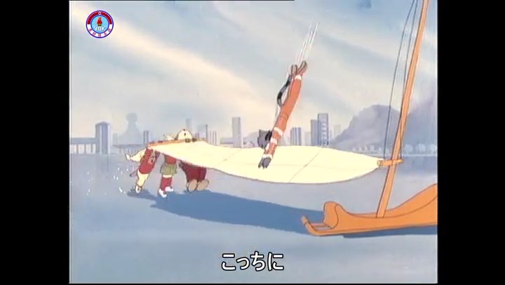 ※船の帆を広げて救助用のトランポリン代わりにする。