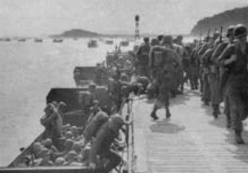 1945年9月8日、「解放者」のベールを被って南朝鮮のインチョン港に上陸する米軍