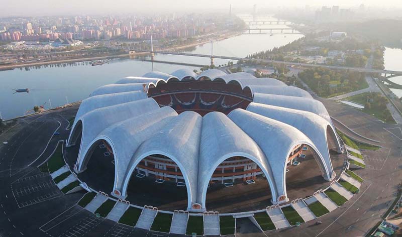 ヤンガク島は島の模様が羊の角のようにできたことからそう名づけられました。島にはヤンガク島国際ホテル、ピョンヤン国際映画会館、ヤンガク島サッカー競技場などが立派に建てられ、人民の文化生活と世界人民との友好を深めるのに大いに役立っています。